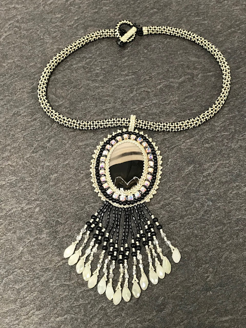 So I started looking in my stash of beading tutorials for something that the beads in this kit would work with, and I came across a tutorial for a netted necklace designed by Cathy Andrews of Andrea Catherine Jewelry, LLC titled Queen Elizabeth.