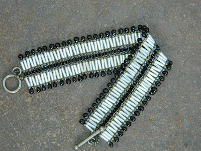This Herringbone bracelet was also created by Christine. Using bugle beads make the stitching go faster. Christine used bugles and hex beads in this design.