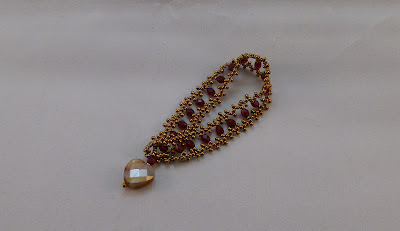 Spice Box Designs when we met on May 31st this year. I used size 15 bronze seed beads and 4mm garnet Czech fire polished crystals and a faced crystal heart for the clasp.