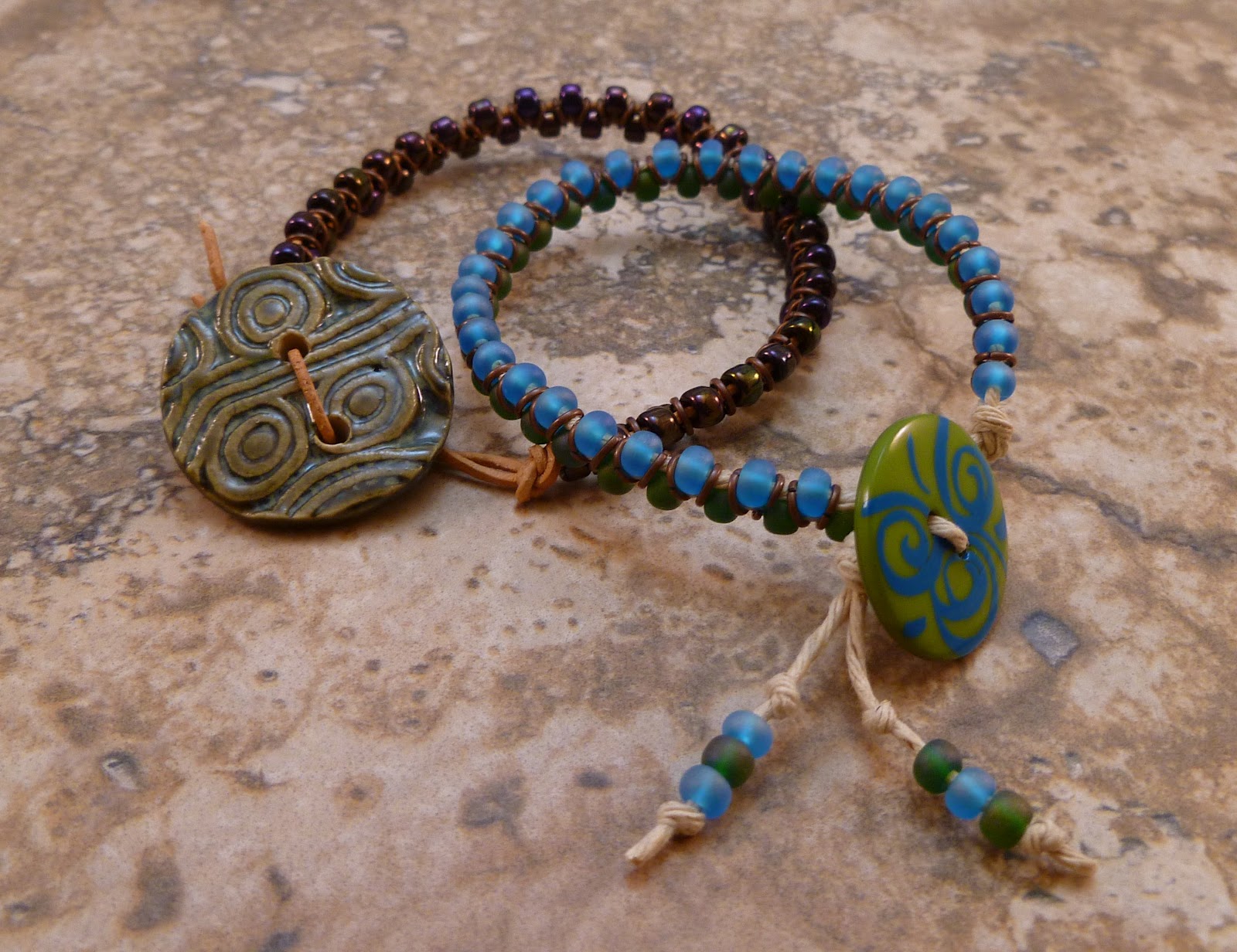 One Kiss Creations. Christine is a wonderfully talented person, she not only bead weaves she also makes these wonderful wrap bracelets using rocks as the focal.