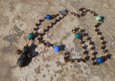 I have on last piece to show you it is not from a tutorial it is a rosary that I made for my Sister for no reason except I just want to make one for her. I made this rosary using lamp worked beads by Juli Cannon of